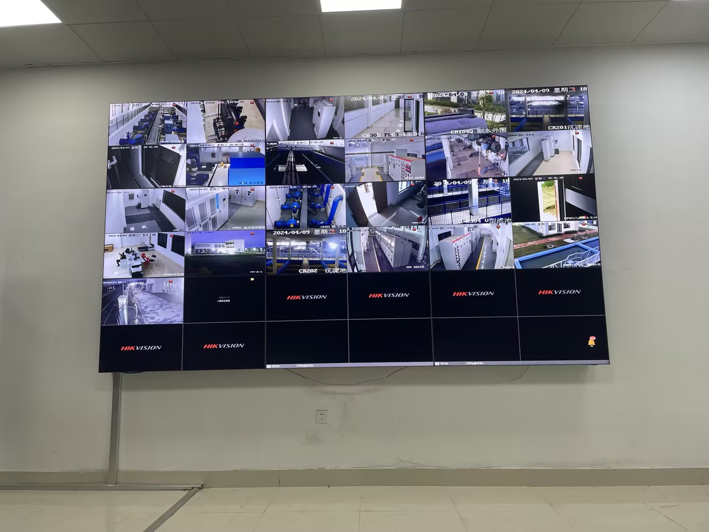 水廠55寸3*3信息監控中心大屏拼接屏驗收!可以切割多個畫面輸出,更好的監控到位!